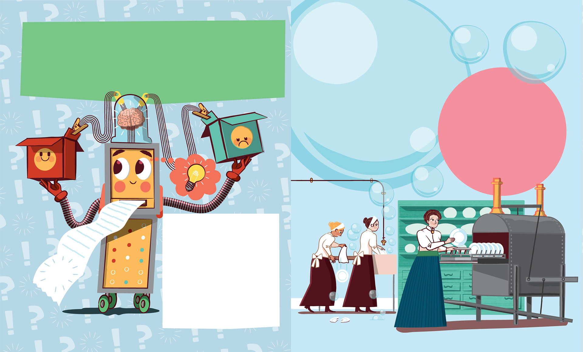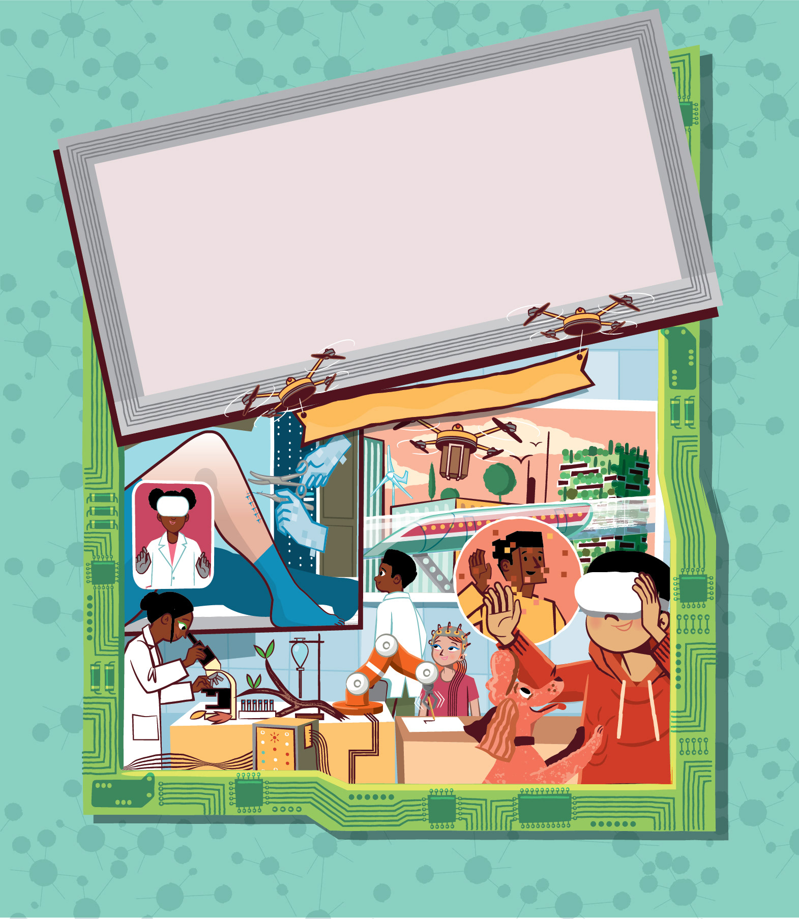 Cover and selected spreads from Future Technology commissioned by Macmillan.