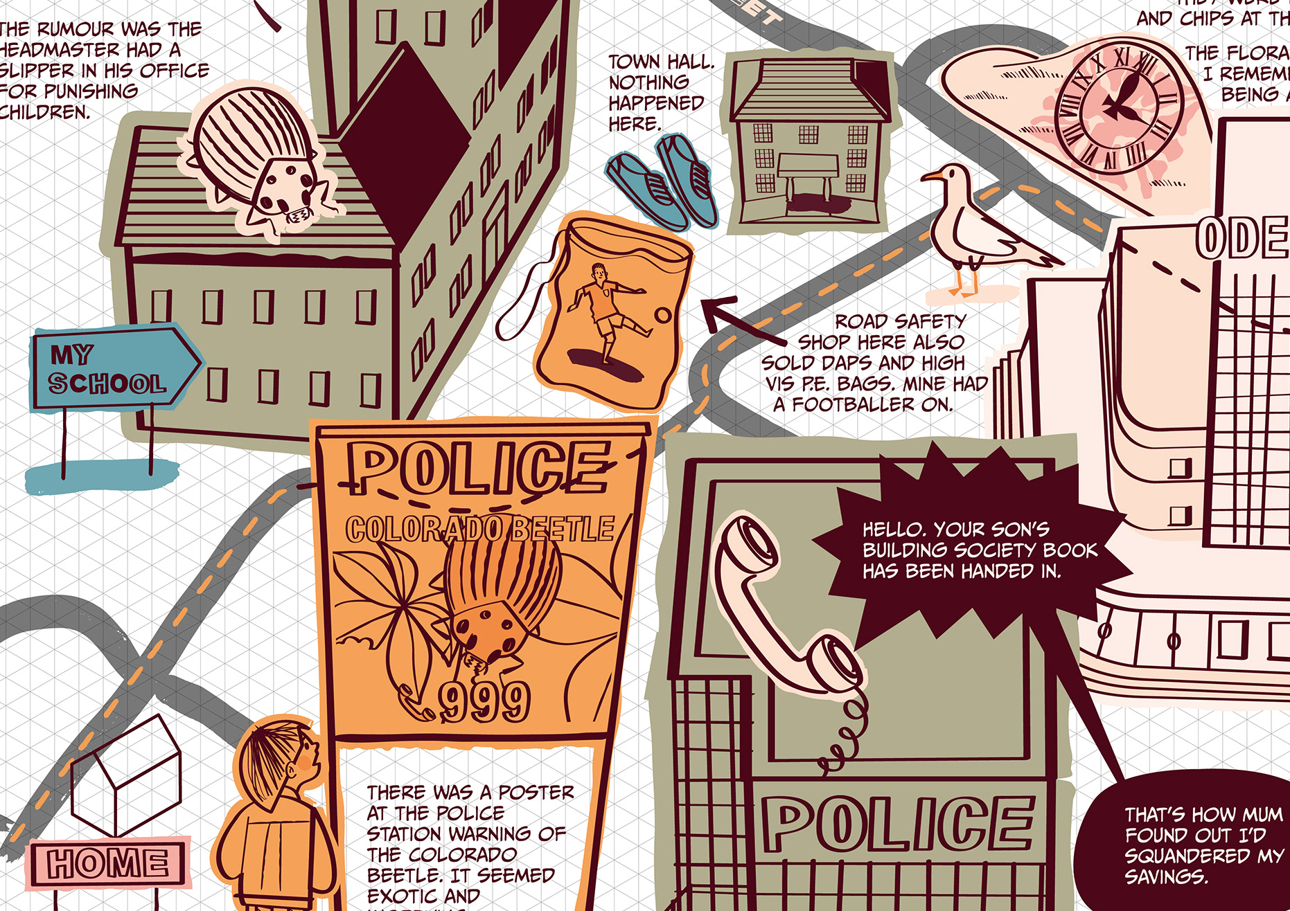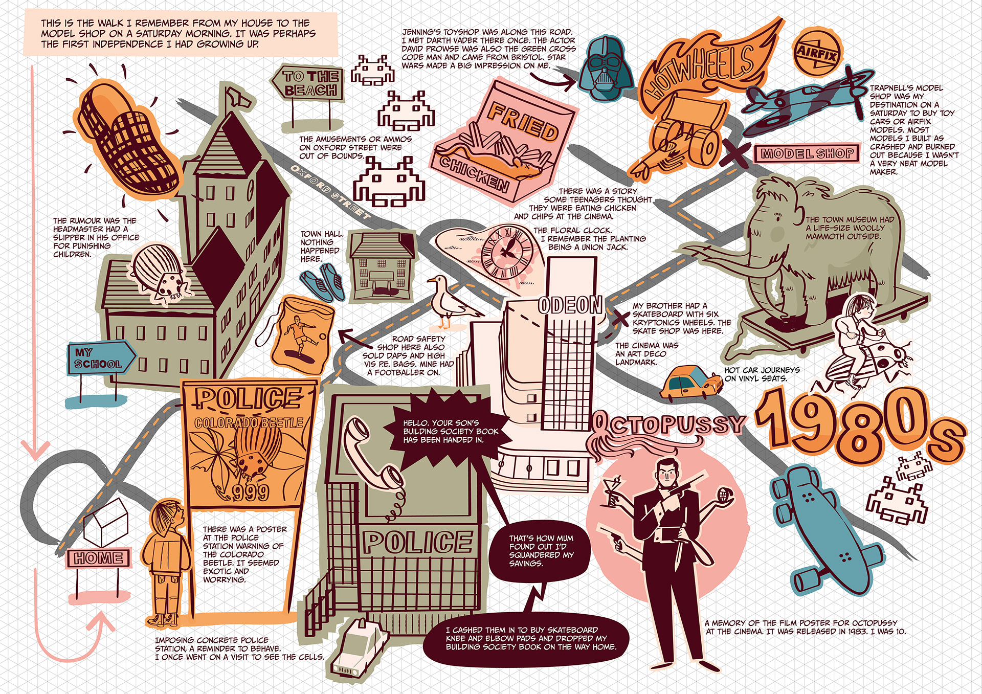 MA project. I devised a workshop for students. The idea was to draw a memorable route from childhood to explore a location and what it means to us. This map was my childhood route to the shops.