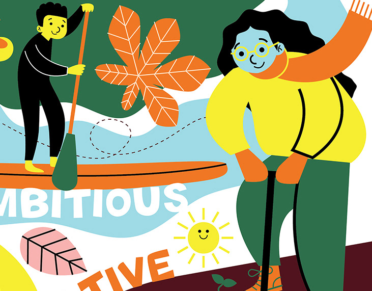 Illustrations for a book on practical ways to take care of your emotional health and wellbeing for carers. Written by Elaine Mottram, with design and art direction by Graeme McMillan.